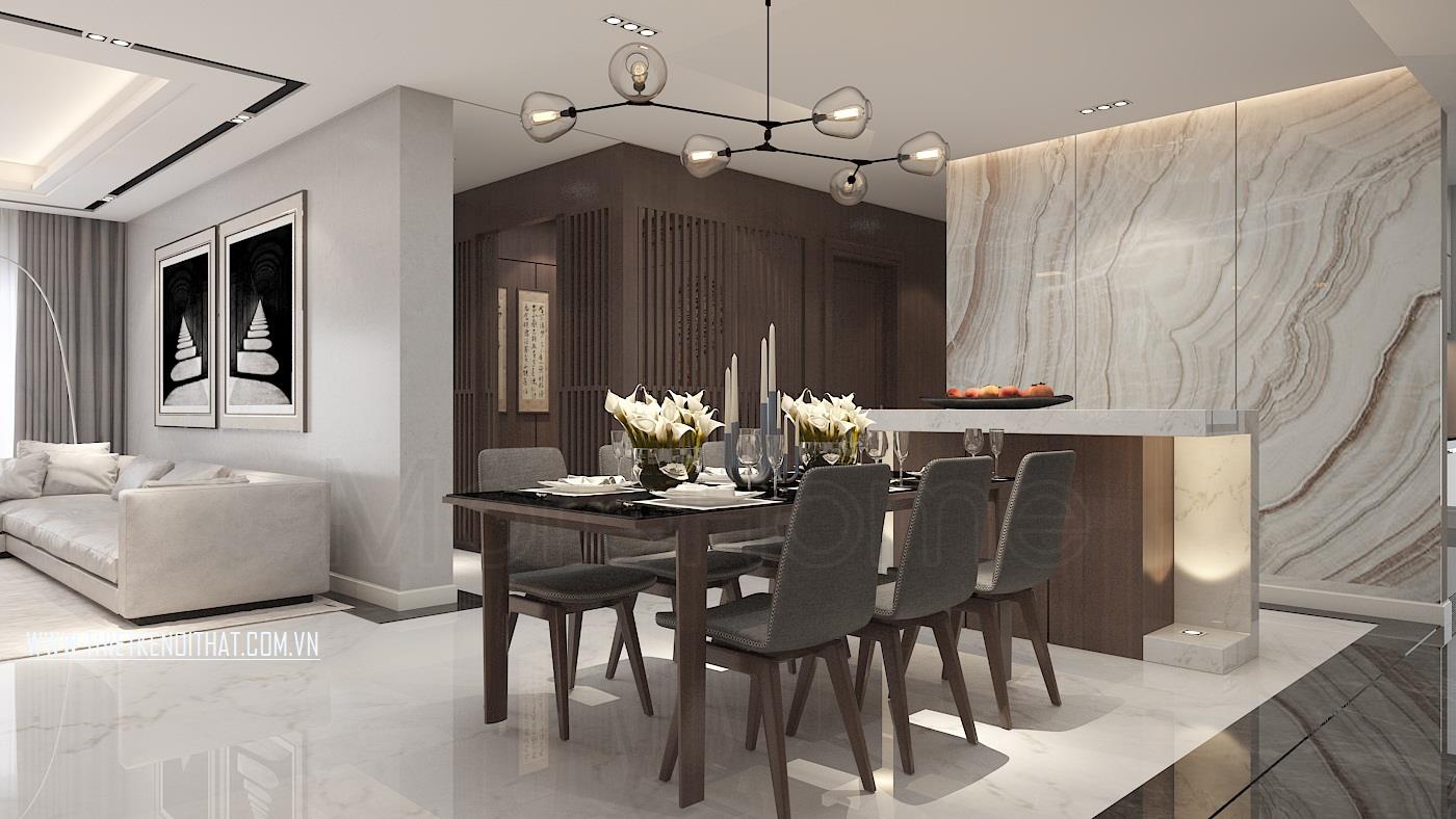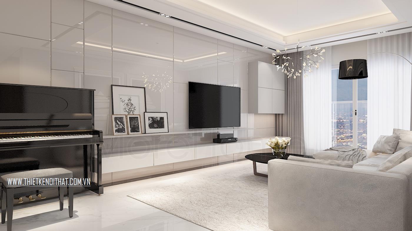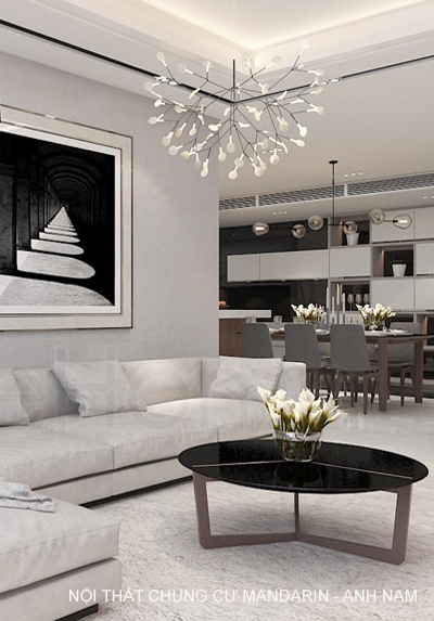 Tùy theo gout thẩm mỹ của mội người mà kiến trúc sư sẽ lựa chọn phong cách thiết kế phù hợp từ đó giúp thể hiện cái Tôi của gia chủ cũng như mang lại cảm giác gần gũi và thân thiện nhất cho các thành viên. Với thiết kế nội thất căn chung cư Mandarin, kiến trúc sư đã ưu ái sử dụng phong cách thiết kế hiện đại, tone màu được lựa chọn cũng là game màu lạnh, đơn giản, không quá nổi bật mang đến cảm giác gọn gàng, tinh tế và hiện đại. Bên cạnh đó, chính việc sử dụng tone màu sáng, tạo độ phản chiếu nhẹ đã góp phần không nhỏ giúp tăng độ thoáng, tạo cảm giác cơi nới cho không gian sinh hoạt.