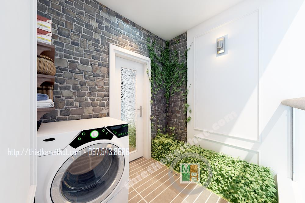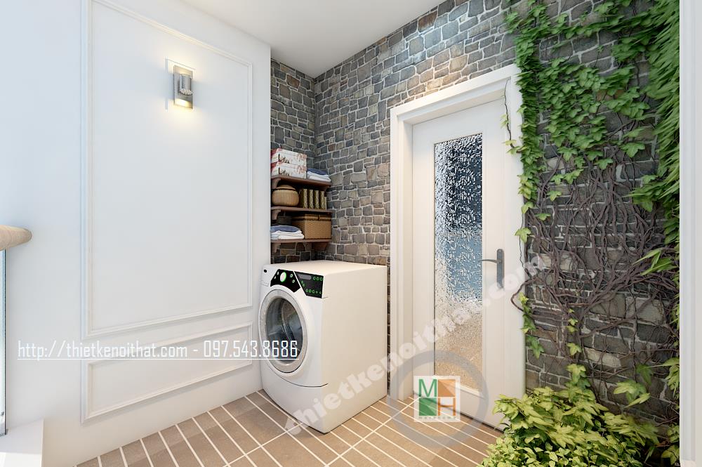 Không gian giặt giũ thiết kế gọn gàng phía ban công mang đến sự thoải mái cho gia chủ.