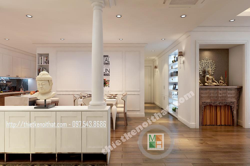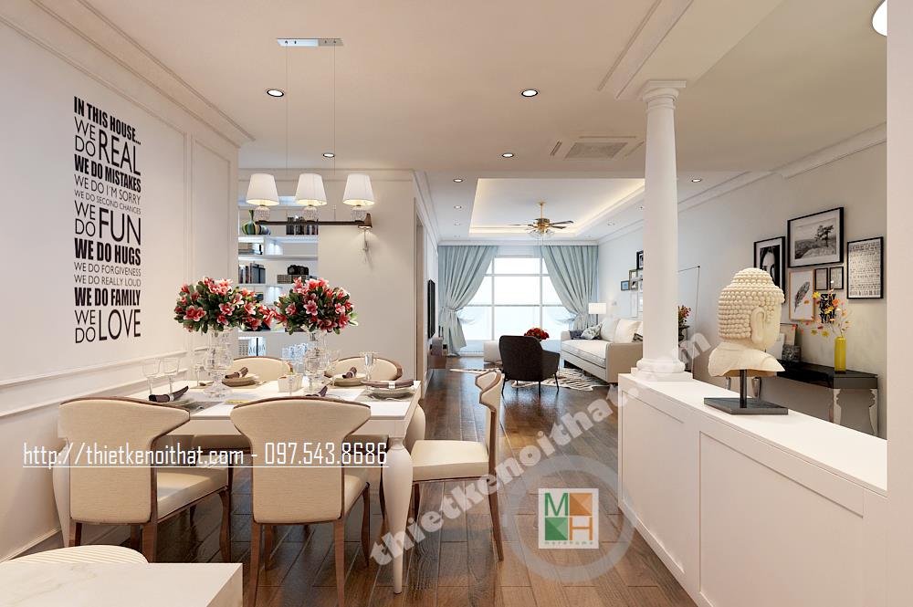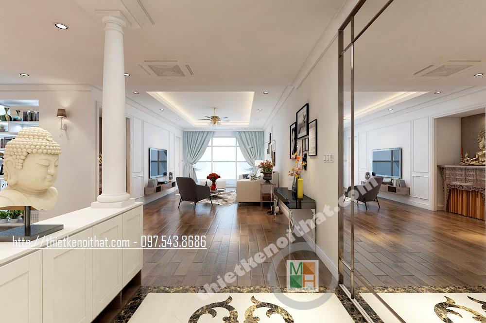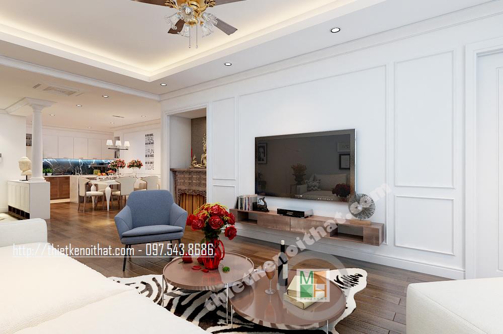 Thiết kế nội thất tân cổ điển đi sâu vào khai thác những đường nét và chi tiết cầu kỳ từ đó mang đến cảm giác sang trọng và quý phái cho căn nhà. Dựa vào đặc điểm thiết kế này, chung cư Mandarin Garden đã rất thành công ki thể hiện được ngôn ngữ thiết kế đồng bộ mang lại cảm giác sang trọng và tiện nghi cho gia chủ.