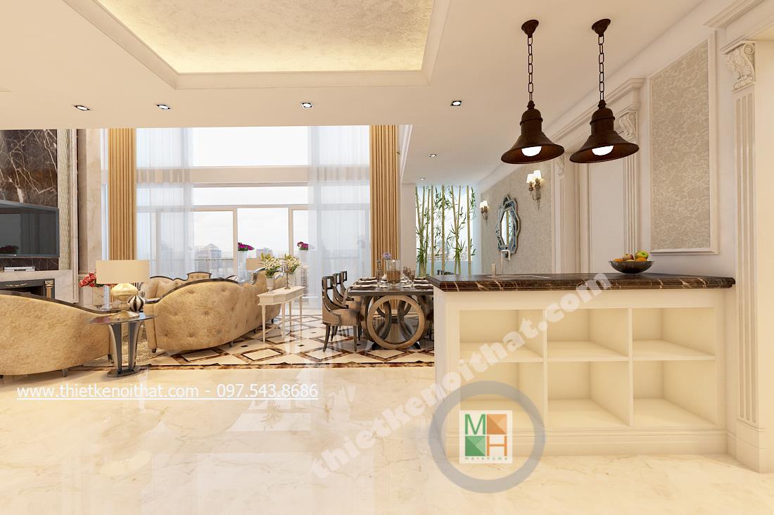 Tọa lạc giữa trung tâm quận Cầu Giấy năng động và nhộn nhịp, lại là căn hộ Duplex với 2 tầng tựa như một căn hộ con giữa chung cư hướng ra không gian đất trời rộng lớn nên thiết kế của căn hộ càng phải làm toát lên vẻ sang trọng và quý phái mà vẫn mang nét hiện đại cùng nhịp sống của thành phố. Do đó thiết kế tân cổ điển được lựa chọn đã giúp căn hộ càng trở nên hấp dẫn và hài hòa hơn.