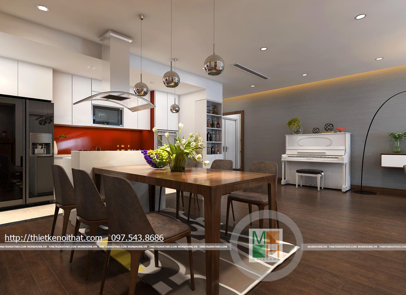 MoreHome có nhiều năm kinh nghiệm trong thiết kế nội thất và thi công nội thất chung cư cao cấp. Hãy gọi cho chúng tôi để được tư vấn