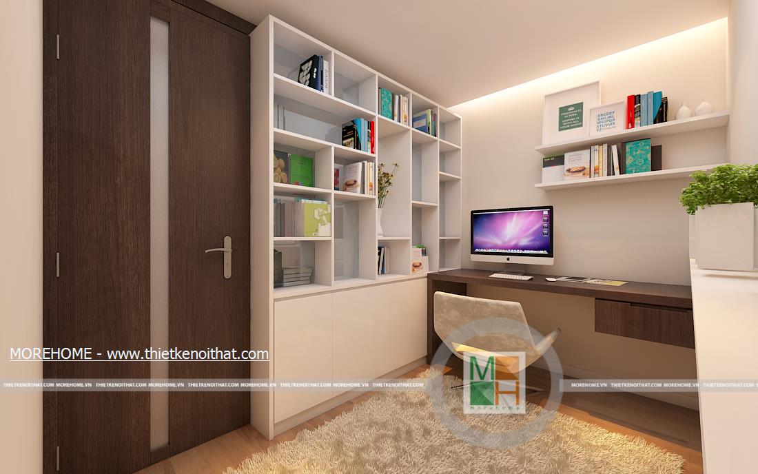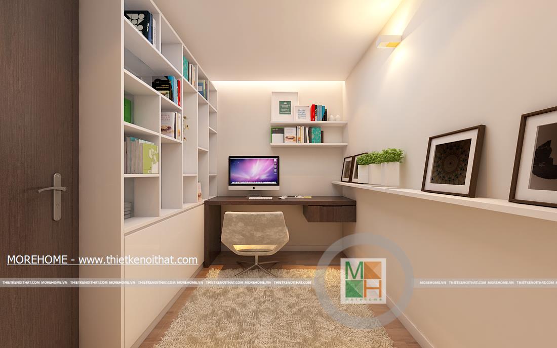 Phòng đọc sách có diện tích nhỏ nhưng bù lại được thiết kế kín để đảm bảo yên tĩnh. Ở góc phòng có kê một bộ bàn ghế để gia chủ có thể ngồi đọc sách giống như trong một thư viện mini vậy.