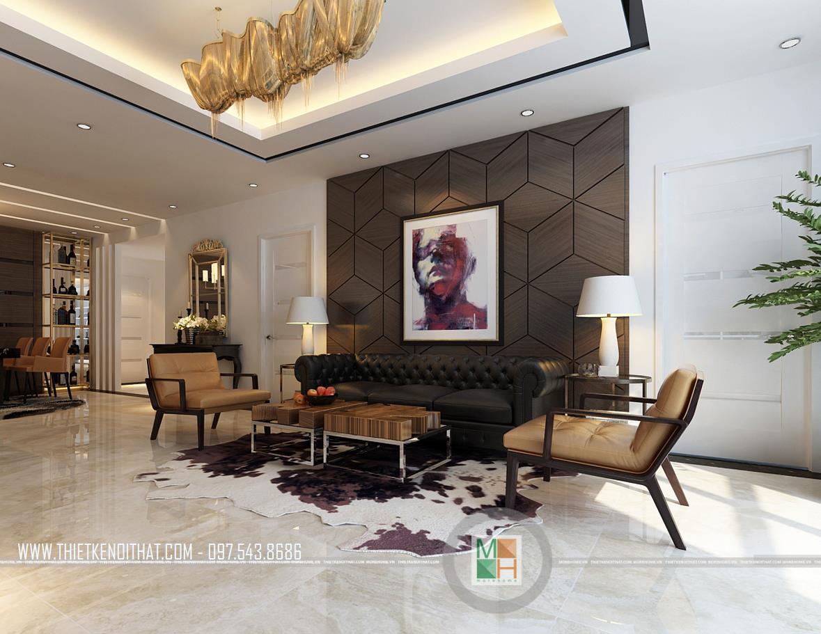 Không gian phòng khách sẽ đem lại cho bạn cảm giác mới lạ với sự kết hợp tinh tế, tương phản trong sự kết hợp màu săc của các vật dụng trang trí nội thất như ghế sofa, thảm trải sàn hay tranh treo tường. Ánh sáng tự nhiên được tận dụng nhờ hệ thống cửa sổ được mở rộng, đồng thời cũng tạo độ thoáng cho không gian phòng. Kiến trúc xanh được lưu tâm với sự sắp đặt có chủ ý cây xanh ở một góc nhà.