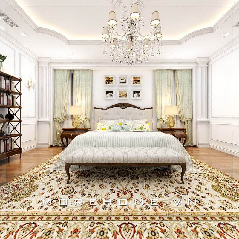 Mẫu giường ngủ tân cổ điển cao cấp với đường nét chạm khắc tinh tế