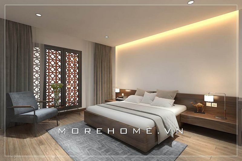 Thiết kế giường ngủ gỗ công nghiệp với những đường nét nhẹ nhàng, đơn giản nhưng vẫn tạo sức hút cho cả cản phòng