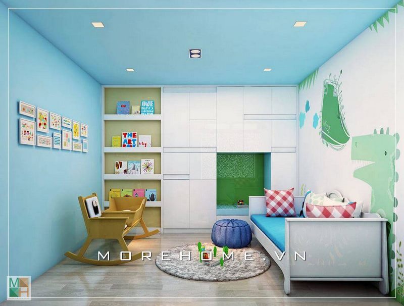 Tạo điểm nhấn ấn tượng cho phòng ngủ nhỏ với chiếc giường ngủ hiện đại gỗ công nghiệp có chân dành cho phòng của bé trai